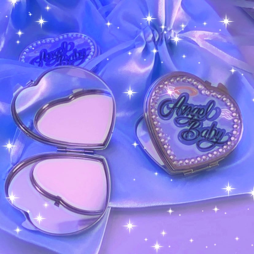 Double sided mirror on the inside with rhinestone detailing on the outside